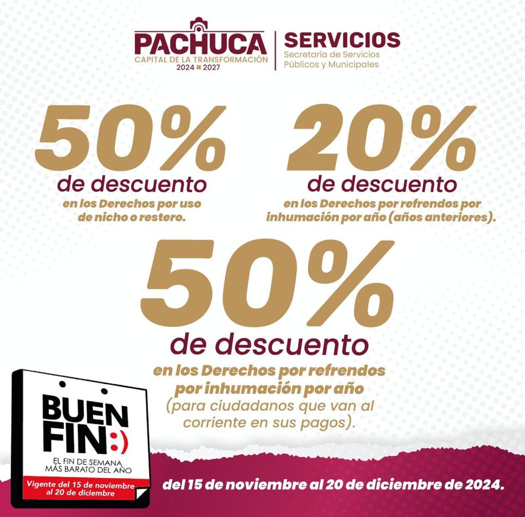 El alcalde de Pachuca, Jorge Reyes invitó a la población para que aprovechen los descuentos que la Presidencia Municipal tiene en sus diversas secretarías por el Buen Fin, programa que estará vigente del 15 de noviembre al 20 de diciembre.