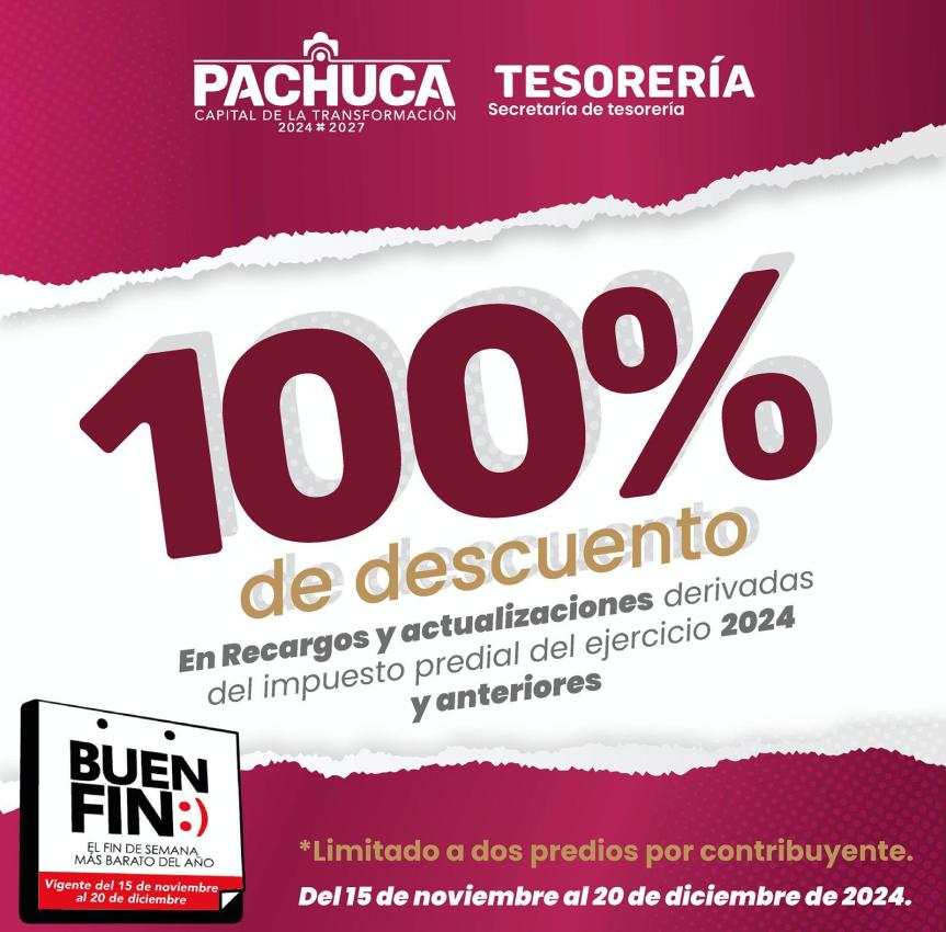• 100% de descuento en recargos y actualizaciones derivadas del impuesto predial del ejercicio 2024 y anteriores (limitado a dos predios por contribuyente).