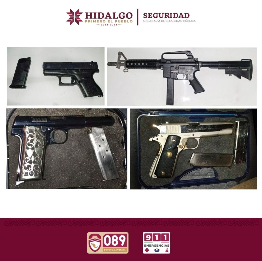 En atención a una denuncia ciudadana, agentes de la Secretaría de Seguridad Pública de Hidalgo (SSPH) llevaron a cabo la detención de tres hombres por presuntamente realizar detonaciones con armas de fuego, así como la portación ilegal de las mismas.