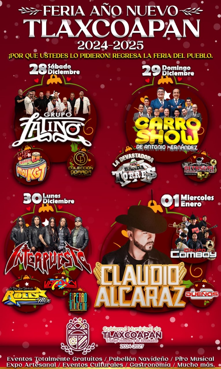 Del 22 de diciembre al 1 de enero de 2025, en la colonia Centro de Tlaxcoapan, Hidalgo, se llevará a cabo la “Expo Feria de Año Nuevo 2024-2025”, organizada por el gobierno municipal. Este evento tiene como objetivo preservar las tradiciones y fomentar la convivencia entre los habitantes y visitantes.
