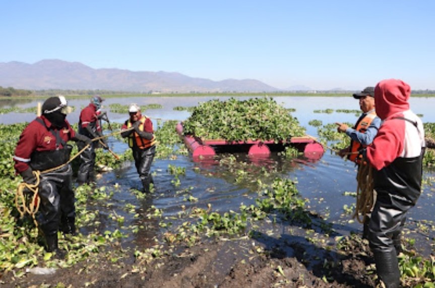 En coordinación con la Defensa Nacional, las presidencias municipales de Tula de Allende y Tepetitlán, así como las autoridades auxiliares de las comunidades cercanas, se han intervenido 81.73 hectáreas infestadas por lirio acuático, lo que representa un importante avance para la limpieza de este cuerpo de agua.
