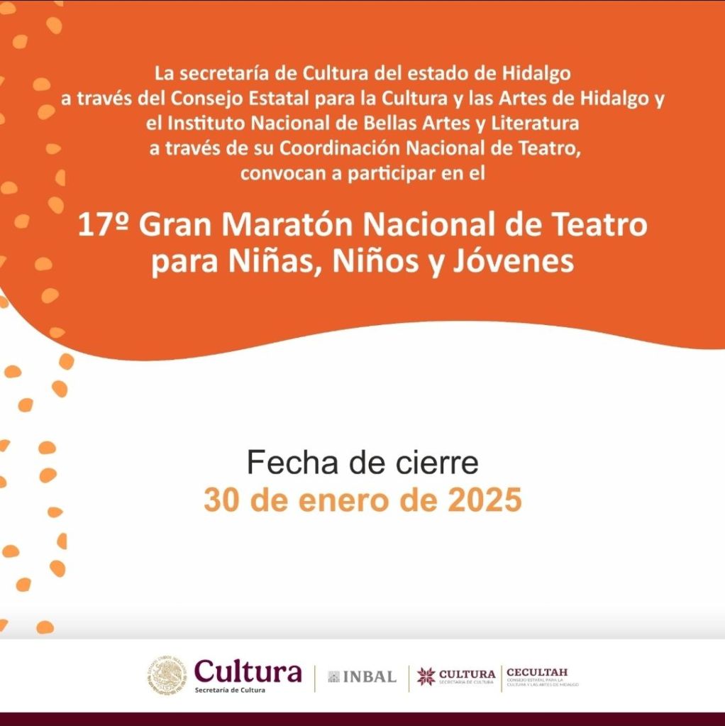 Se da inicio a la convocatoria para participar en el 17º Gran Maratón Nacional de Teatro para Niñas, Niños y Jóvenes, un evento que busca resaltar la creatividad y el talento de las nuevas generaciones.