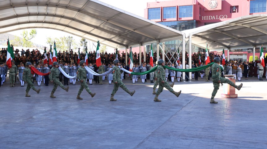 A través de una ceremonia simultánea y en conmemoración al Día de la Bandera Nacional, el gobernador de Hidalgo, Julio Menchaca, participó en la toma de protesta y el abanderamiento de escoltas realizado desde el Campo Militar Marte, por parte de la presidenta de México, Claudia Sheinbaum Pardo.