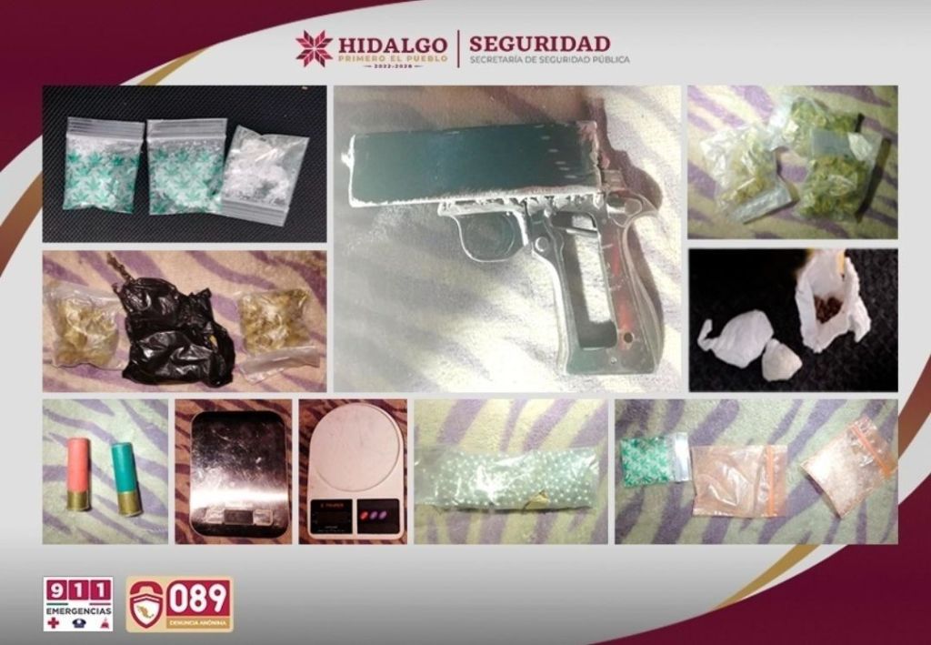 Derivado de ello, y en coordinación interinstitucional con la Procuraduría General de Justicia de Hidalgo (PGJEH) y Sedena, fueron detenidos dos hombres, a quienes les decomisaron 120 dosis de hierba seca con características de la marihuana y 47 dosis de droga sintética “cristal”.