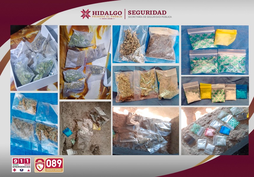Mediante la ejecución de operativos alternos para combatir la incidencia delictiva en la entidad, la Secretaría de Seguridad Pública de Hidalgo (SSPH) aseguró diferentes drogas, vehículos robados y utensilios para la extracción ilegal de hidrocarburo en los municipios de Tlahuelilpan y Tlaxcoapan.