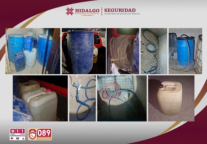 Resultado de labores de inteligencia operativa, elementos de la Secretaría de Seguridad Pública de Hidalgo (SSPH) aseguraron un total de 4 mil 432 dosis de presunta droga, más de 400 litros de hidrocarburo y se logró la detención de cinco personas durante la ejecución de dos cateos en los municipios de Ixmiquilpan y Tlaxcoapan.