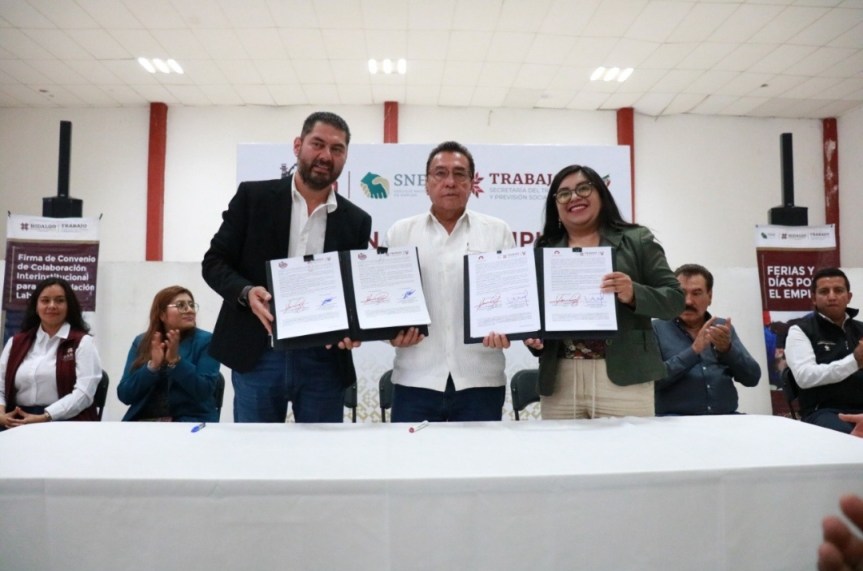 Asimismo, el secretario del Trabajo firmó convenios de colaboración con el presidente municipal de Mineral del Monte, Edmundo Méndez Tejeda, y la alcaldesa de Omitlán, Martha Belem Oliver González.