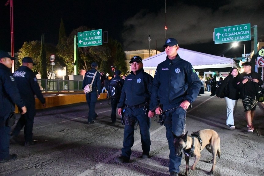 Además, con el objetivo de garantizar la seguridad de las más de 35 mil personas que se dieron cita en la explanada de la Plaza Juárez de Pachuca, se implementaron recorridos mediante grupos integrados por policías estatales, Unidad Táctica, Unidad K9, Policía Violeta, así como del Heroico Cuerpo de Bomberos.