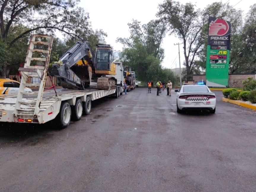 La Dirección General de Conservación de Carreteras Estatales (DGCCE) trasladó una excavadora y un cargador frontal a bordo de tractocamiones y tráileres del Centro Estatal de Maquinaria para el Desarrollo (CEMD), sin embargo, debido a las dimensiones de las unidades y que el camino cuenta con curvas pronunciadas, se dificultó el avance, por lo que la maquinaria se bajó de los tráileres para avanzar sobre la carretera.