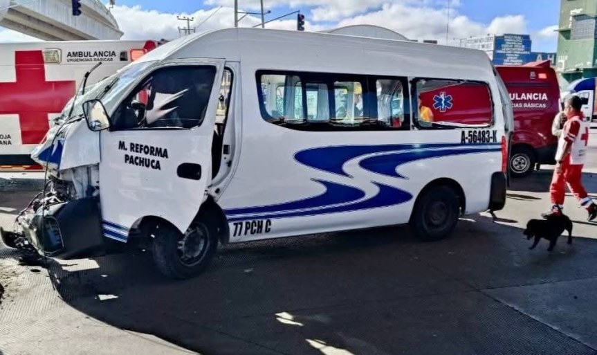 Este sábado 20 de septiembre de 2025, una combi de transporte público colisionó contra un tráiler en el bulevar Nuevo Hidalgo, a la altura del puente vehicular de Tulipanes, en los límites de Pachuca y Mineral de la Reforma.