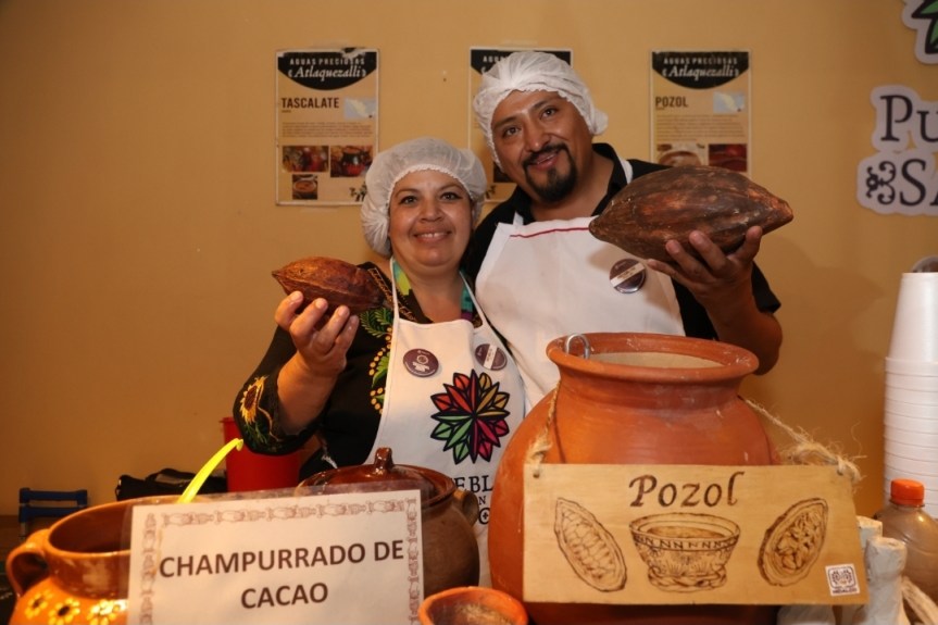 Por su parte, Sandra Farah Zarco y Fernando Rodríguez Rojas, representantes de la chocolatería Macondo del municipio de Tizayuca, compartieron su pasión por el cacao, con 17 años de trayectoria elaborando productos como semillas, mermeladas, bálsamos, chocolates, champurrado, pozol y chilate.