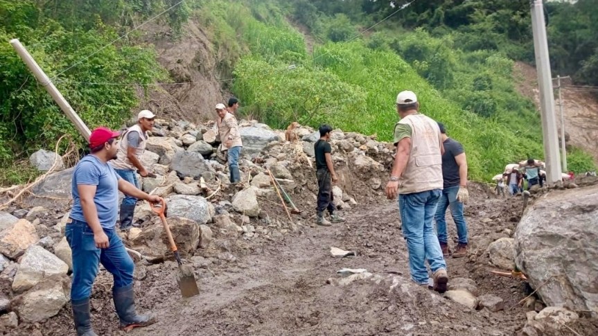 • El Programa de Vectores también se sumó a las labores de apoyo en la localidad de Calintla, municipio de San Bartolo Tutotepec, colaborando en la remoción de escombros y apertura de caminos que permiten el acceso a comunidades aisladas.