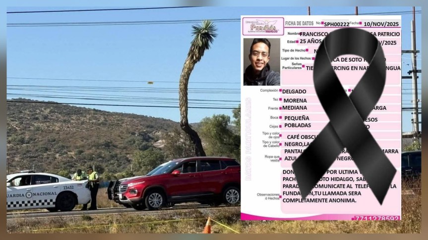 Un hombre de 25 años de edad, identificado como F. J. de la R., quien había sido reportado como desaparecido el pasado 10 de noviembre, fue localizado sin vida la tarde de este lunes en el camellón central de la carretera federal México–Pachuca, a la altura del municipio de Tolcayuca.