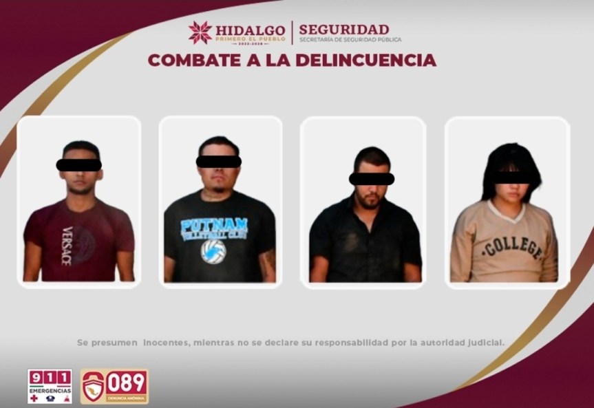 Secretaría de Seguridad Pública de Hidalgo (SSPH). Durante la inspección, fueron aseguradas cuatro personas a quienes se les confiscaron diversas