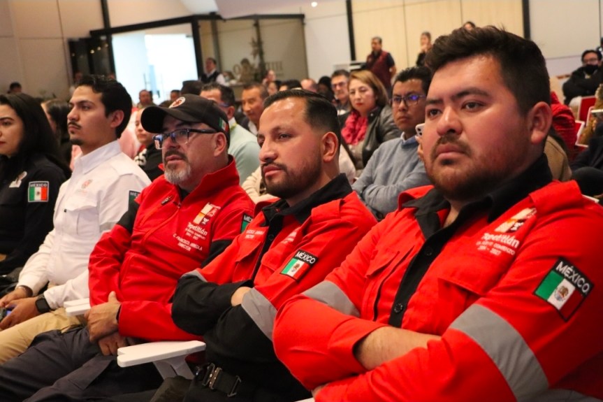 En el ámbito de capacitación, se impartieron 82 talleres sobre primeros auxilios, brigadas, combate de incendios, búsqueda y rescate, guardianes de protección civil y sistema de comando de incidentes, además de la participación en congresos y certificaciones especializadas como el Programa Hospital Seguro, cursos de rescate en espacios confinados y formación CERT en el Centro Nacional de Prevención de Desastres (Cenapred).