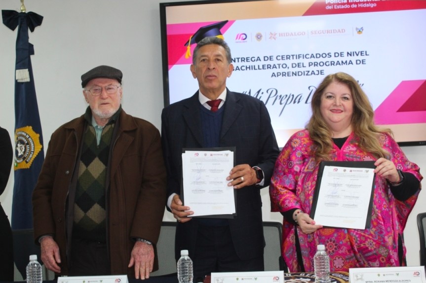 En el mismo acto, las autoridades formalizaron la renovación del convenio de colaboración entre la PIBEH y el programa Mi Prepa Digital, lo que permitirá ampliar las oportunidades educativas para más elementos de la corporación y sus familias. Este acuerdo contempla beneficios significativos, entre ellos descuentos de hasta casi el 70 por ciento en las cuotas habituales, además de un esquema de educación virtual diseñado para adaptarse a las necesidades laborales del personal de la Policía Industrial Bancaria del Estado de Hidalgo.