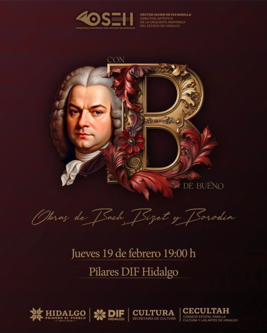 La Orquesta Sinfónica del Estado de Hidalgo (OSEH) iniciará su temporada 2026 con el concierto titulado “Con B de bueno”, una propuesta que reúne obras de compositores cuyos apellidos comienzan con la letra “B”, en una velada dedicada a la fuerza y sensibilidad de la música sinfónica.