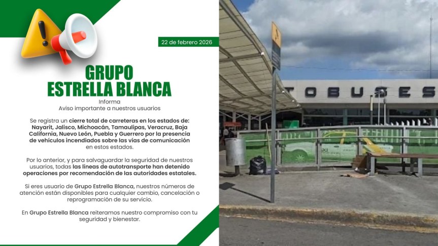Poco después de las 11:00 horas, la empresa Estrella Blanca informó a través de redes sociales la suspensión de sus corridas con destino a Tepic, Jalisco, Michoacán, Tamaulipas, Veracruz, Baja California, Nuevo León, Puebla y Guerrero.