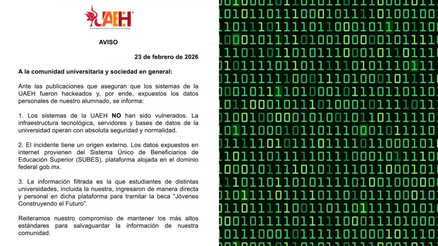 UAEH NIEGA HACKEO A SUS SISTEMAS Y ACLARA QUE FILTRACIÓN PROVIENE DE PLATAFORMA FEDERAL