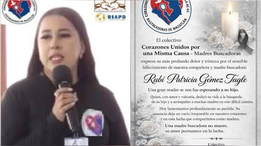 Rubí Patricia Gómez-Tagle, madre buscadora e integrante del colectivo Corazones Unidos por una Misma Causa A.C., fue encontrada sin vida este viernes 27 de febrero en Mazatlán, Sinaloa, confirmó la Fiscalía General del Estado de Sinaloa.
