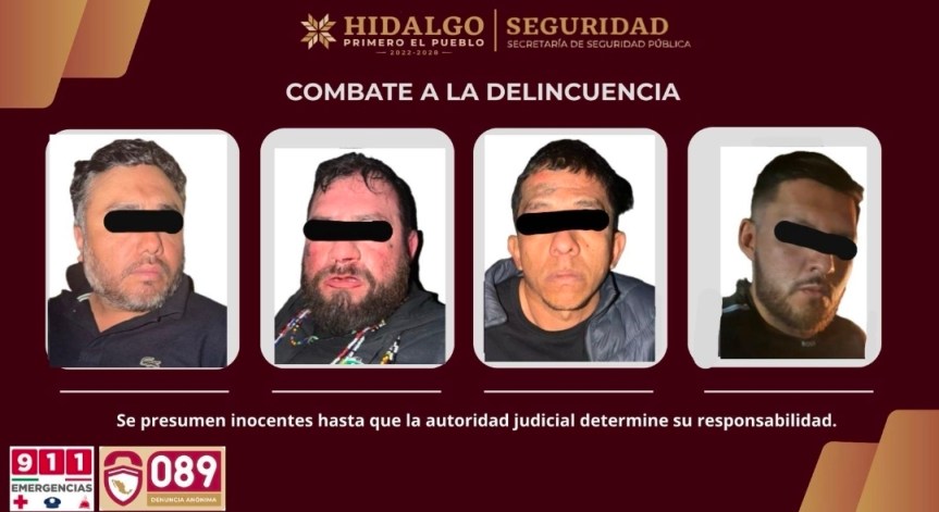 La Secretaría de Seguridad Pública de Hidalgo informó el aseguramiento de cuatro hombres en posesión de armamento y presuntas sustancias ilícitas en la colonia Tultengo, en Tula de Allende.
