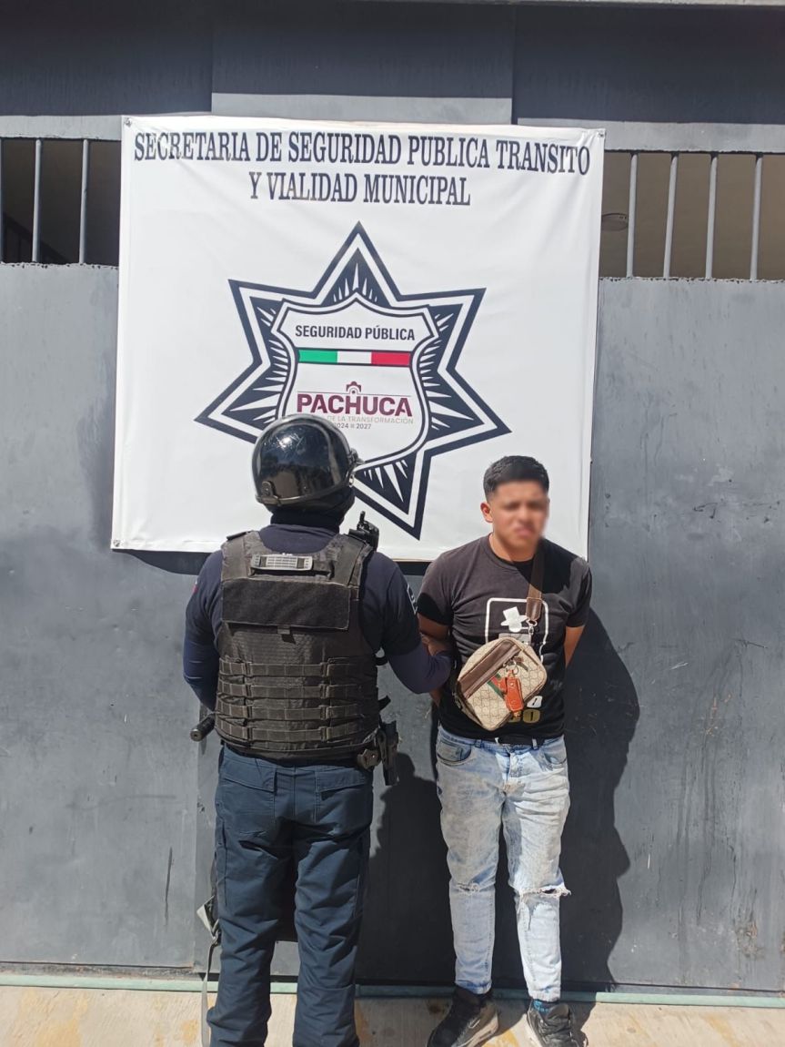 Elementos de la Secretaría de Seguridad Pública, Tránsito y Vialidad de Pachuca detuvieron a un joven de 20 años en la colonia Ex Hacienda de Guadalupe, luego de que fuera sorprendido circulando en sentido contrario, sin placas y sin casco de seguridad.