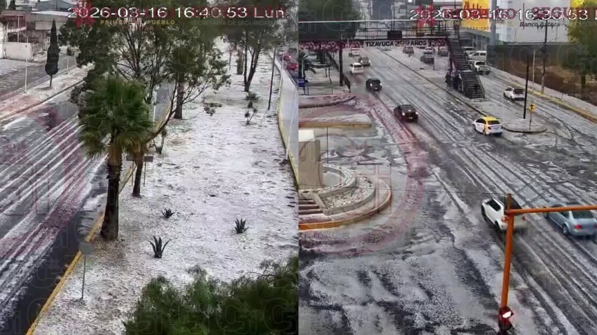 Una intensa lluvia acompañada de granizo sorprendió esta tarde a habitantes del municipio de Tizayuca, donde varias calles quedaron cubiertas por una capa blanca que llamó la atención de la población.
