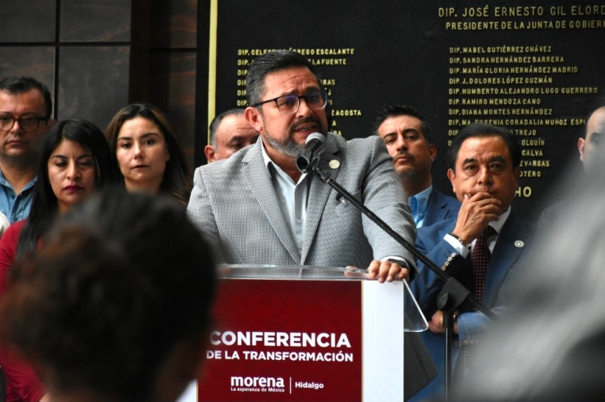 El diputado Andrés Velázquez Vázquez encabezó una conferencia de prensa en la que la bancada de Morena en Hidalgo expresó su respaldo al denominado “plan B” de la reforma electoral impulsada por la presidenta de México, Claudia Sheinbaum Pardo.