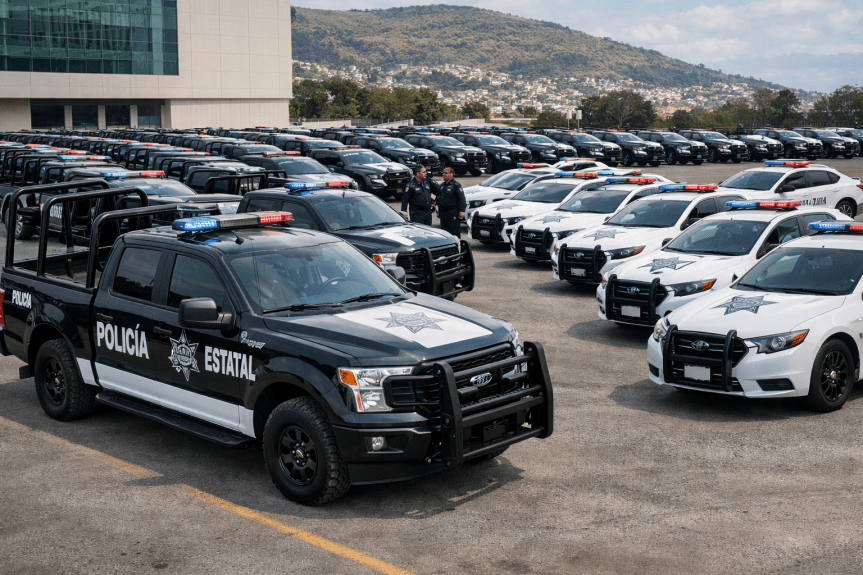 Según la licitación EA-913003989-N0022-2026, la empresa Sum Services S. de R.L. de C.V. fue la adjudicada para la entrega de 170 camionetas pick-up V8 doble cabina 4×4 y 30 vehículos sedán de cuatro cilindros, todos adaptados para funciones de seguridad pública.