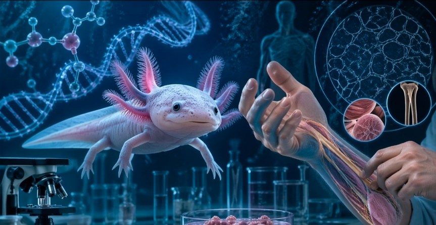 El ajolote se ha consolidado como uno de los modelos biológicos más relevantes en la medicina regenerativa debido a su capacidad única de reconstruir extremidades completas en un periodo aproximado de entre 40 y 60 días, incluyendo huesos, músculos, nervios y vasos sanguíneos, sin dejar cicatrices funcionales.